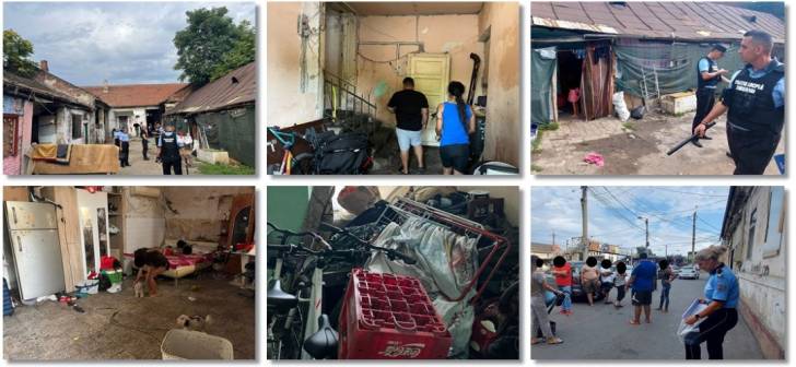 Poliția locală din Timișoara a efectuat vineri o acțiune la mai multe imobile abandonate și ocupate abuziv, situate în apropierea Gării de Nord. Agentații, însoțiți de proprietar, au pătruns în cinci clădiri dezafectate de pe strada Gheorghe Pop de Basesti, unde au găsit mai multe persoane care trăiau în condiții mizere. Printre obiectele găsite în curți și în interiorul clădirilor se numără biciclete, navete goale, saltele și diverse tipuri de deșeuri. În total, 21 de adulți și 11 copii au fost preluați de polițiști pentru verificări și ulterior vor fi predați serviciilor sociale.