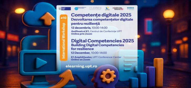 Universitatea Politehnica Timișoara, prin Departamentul de ID/IFR și Educație digitală, anunță organizarea celei de-a X-a ediții a Workshop-ului Competențe Digitale 2025, axat pe „Dezvoltarea competențelor digitale pentru reziliență”.