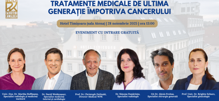 Wiener Privatklinik (WPK) aduce expertiza internațională la Timișoara printr-un eveniment dedicat pacienților oncologici. Pe 28 noiembrie, la Hotel Timișoara, WPK organizează un eveniment gratuit, intitulat „Tratamente de ultimă generație împotriva cancerului 2025”, având ca invitați specialiști internaționali din domeniu. Participanții vor avea ocazia să interacționeze cu cinci oncologi din Viena și un expert român, în cadrul unui format dinamic care include prezentări scurte și sesiuni de întrebări și răspunsuri.